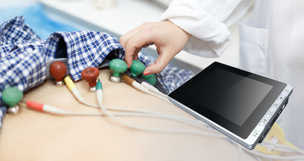 An EKG (electrocardiogram) machine detects and records the heart’s electrical signals through electrodes attached to the skin. The results are displayed as waveforms that represent the heart’s function over time.